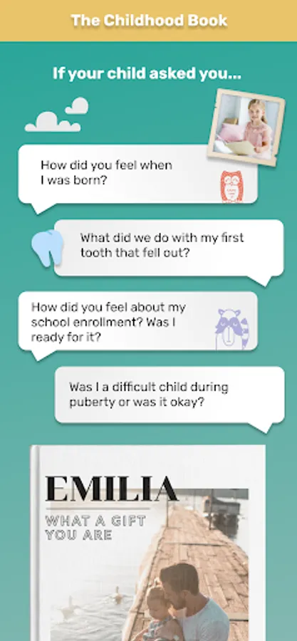 So there they are, the offspring. And while your everyday life is their childhood, time just passes you by. Clearly, not everyone manages to make a photo book every year. But it has to be done! With the Meminto childhood book you can make up for it, even if your offspring is already over 18. By asking specific questions, you always know exactly where to look for which old photos...