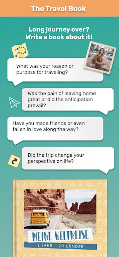 You have been on the road for a long time and experienced a lot? And you think that 1 or 2 photo books can hold all your experiences? Let's be honest: Didn't you sit next to it every time and explain what you saw on the pictures, the stories behind them, and what happened before and after? That's exactly why we developed the travel book. It speaks for itself. And it speaks about your preparations, the people you met on your journey, the emotions you were able to gather, good and bad times. And your pictures have a place in it too. At a great price.