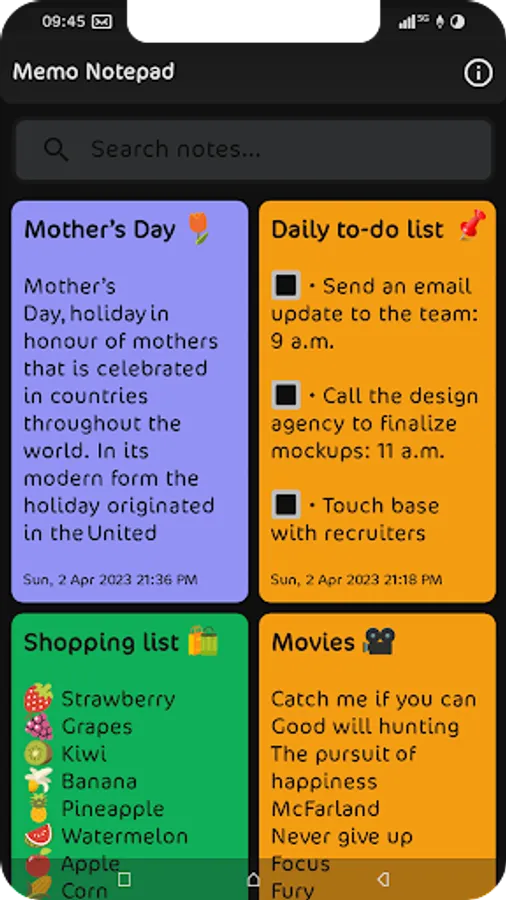 Memo Notepad is a simple & awesome note taking app. It gives you a quick and simple notepad editing experience when you write notes, memos, ideas, plain text, shopping lists and to-do lists, e-mails & messages or any other important information. Taking notes with Memo Notepad® is easier than any other notepad or memo pad app.
