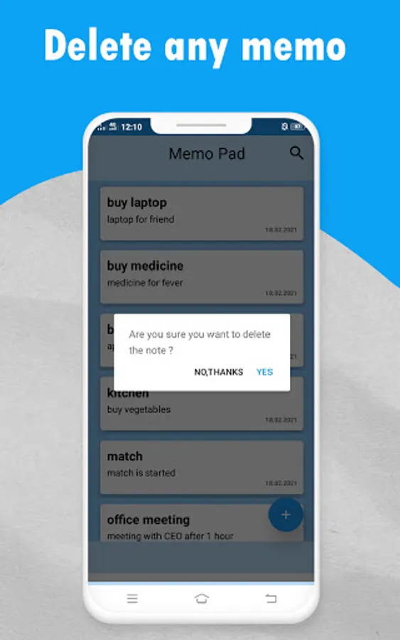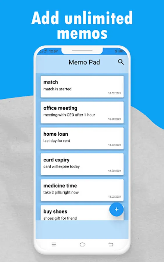 What's better than a blue theme to write on? Our mémo app has a blue tone theme, which makes it easier to jot down important points. From now on, you don’t have to compromise on remembering things. Just open this memo pad and write down all the necessary details. A memo pad app can save all the dates from the anniversary date to the wife’s birthday.