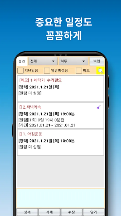 (Birthday, event, memorial service, D-day, etc. Other schedules that require an alarm function can be registered and can be used as a schedule, notepad, diary, and household account book.)
