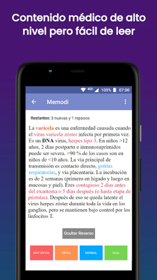 Memodi will be your best company to study and review Medicine. It is an application based on 4 evidence-based learning techniques, which contains +2,500 key points of the 750 most important topics of all Medicine, so that you remember them forever. With investing only 30 minutes of your day. Yes, forever.