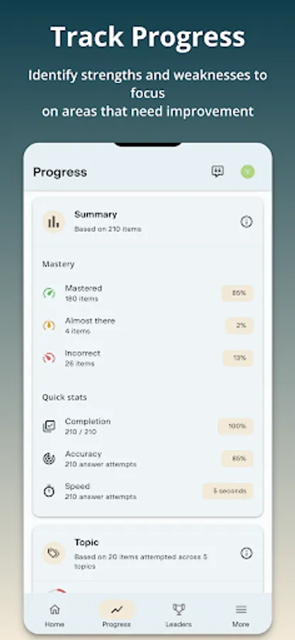 • Advanced progress tracking to pinpoint your strengths and weaknesses across