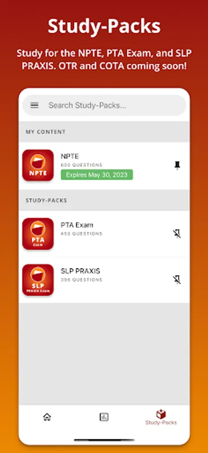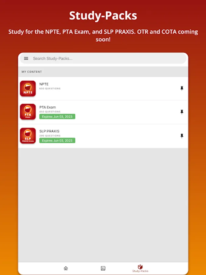 Each Study-Pack subscription contains restricted, premium content that requires an in-app purchase in order to access it for a limited period of time (e.g. 12 months). When this period expires, you will lose access as TherapyEd does not support auto-renewal. If you wish to extend your access (e.g. you moved your exam date), you can add time via additional in-app purchases. Also, please note that (as of July 2022) there is a significant overlap between the questions contained in the app and the books, but we are working to add more unique content to the app as quickly as we can.