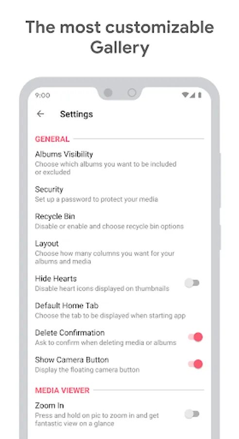 Keep your personal photos secure in the Vault or by hiding your albums. Only you can access them with PIN, Password or with the Fingerprint protection