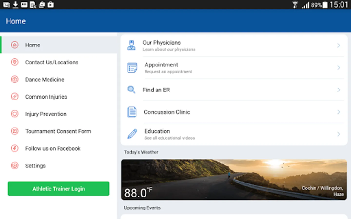 ER Locator - With the click of a button the app will assist you in finding the nearest ER to your location. This is a great feature for parents and coaches of active children and those involved in travel teams.