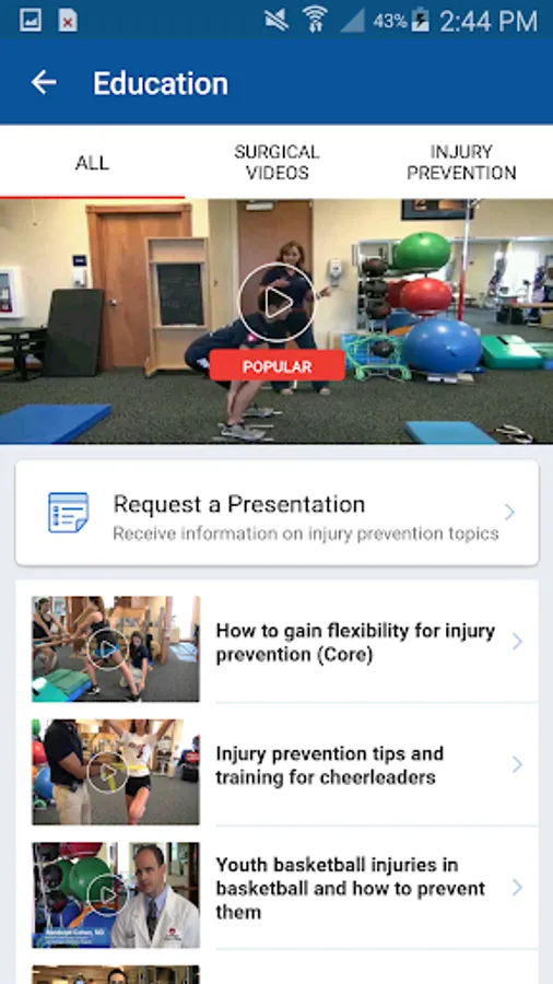 Education & Injury Prevention- Watch videos and learn how to prevent common sports related injuries. Here you will also be able to view animated surgical videos for pediatric orthopedic and sports related conditions.