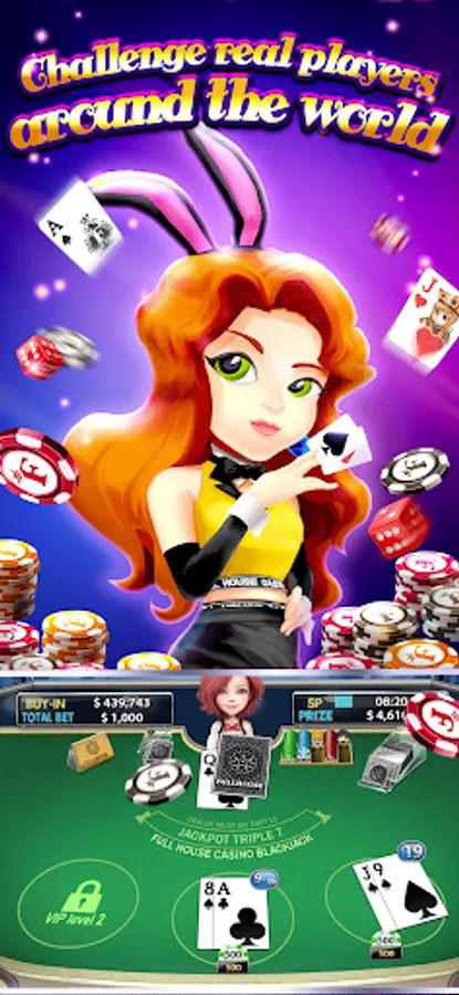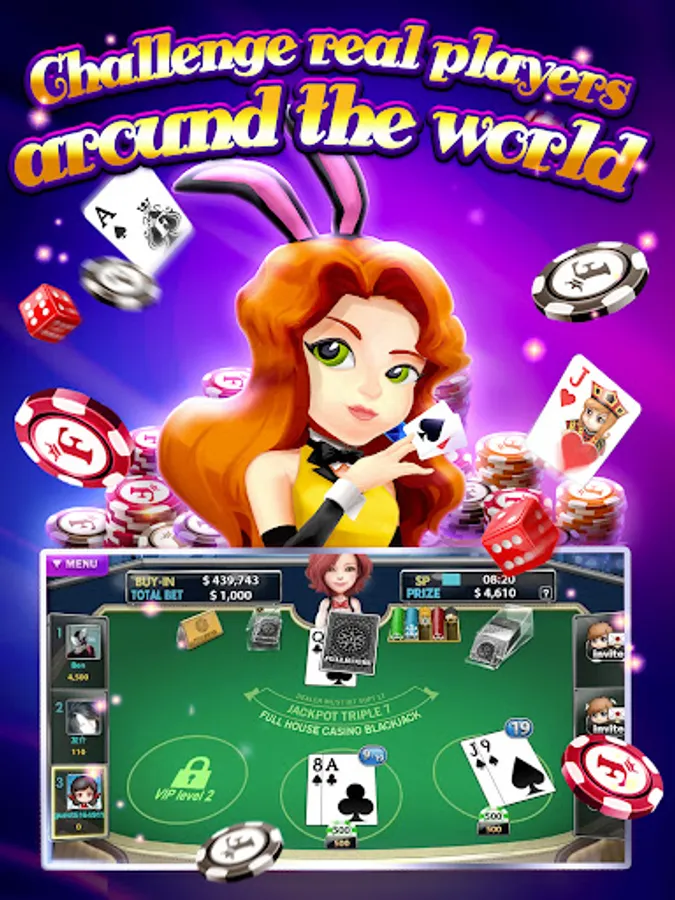 In Full House Casino, you can work your way to the highest VIP level simply by playing any casino games! Enjoy exclusive daily jackpot bonus, quest rewards and payment discounts as your VIP status progresses!