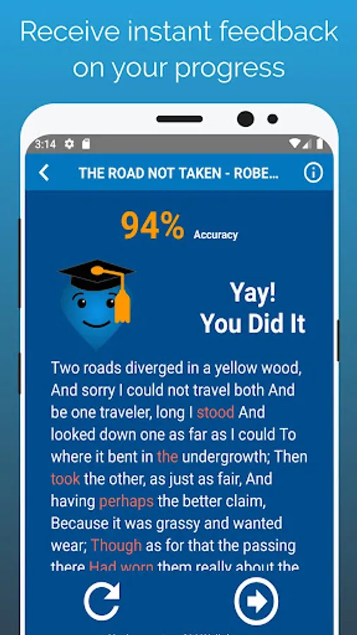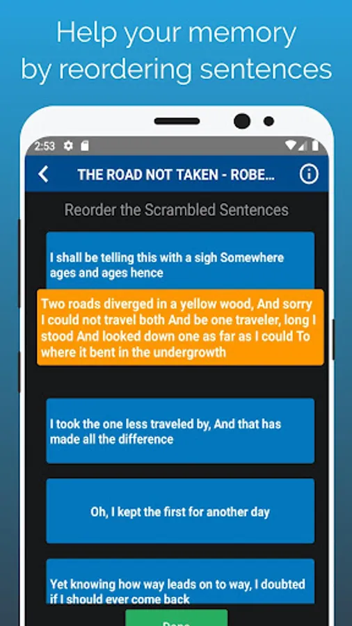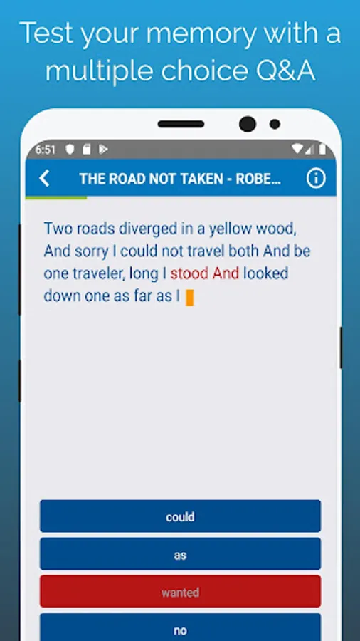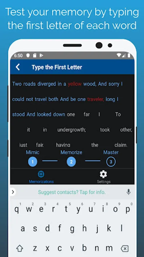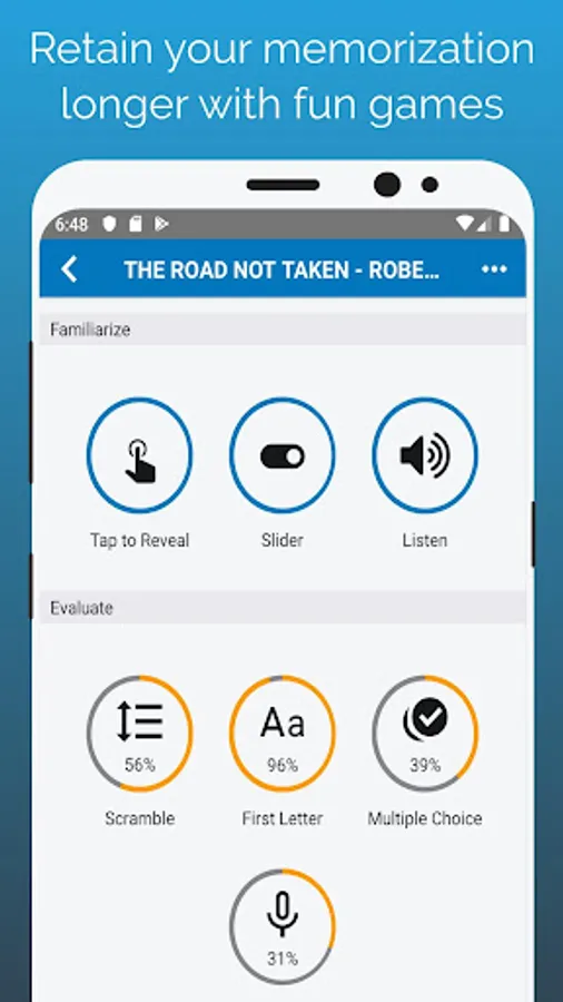 Review your text at the precise interval, made possible by push notifications, for maximum long term memorization. You will spend less time memorizing overall if you follow the time intervals.