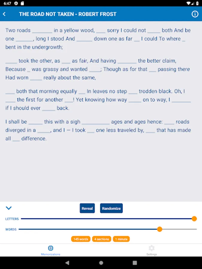 Great for anything you need to remember; speeches, poems, lyrics, sonnets, scripture verses, school work, language learning, security protocols, medical terms, safety procedures, quotes, aphorisms, technical specifications, and anything else you want to commit to memory.
