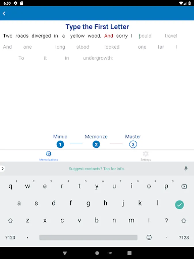* Scan an image or take a picture with text. Memorize By Heart will then analyze the image for any text.