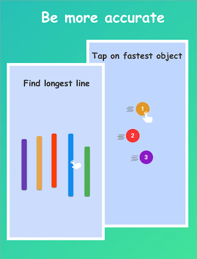 Accuracy Games: Improve accuracy levels by finding the fastest moving objects, measuring heights, and many more mind games.