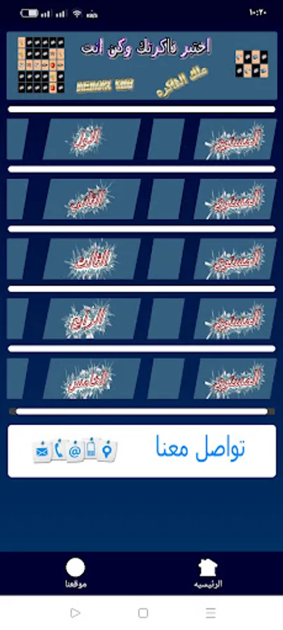 You can install the memory game easily and you can also download it from Google Play. The memory game - the king of memory - consists of several levels to play, the first level consists of 16 images, you must match the images at a certain time, in the memory game - the king of memory - you can move between levels without order, meaning that you can choose the first level or even the fifth level Or even the higher level from the beginning, and in the game of matching pairs, each level is more difficult than the other, in the number of pictures and in the timeline. Memory game - the king of memory - you do not need to log in, its very easy and simple. An endless matching pairs of pictures game that develops recognition and concentration skills in adults. Matching games have cute and polite sounds for adults. In this memory match learning game you will use HD graphics designed for good presentation..