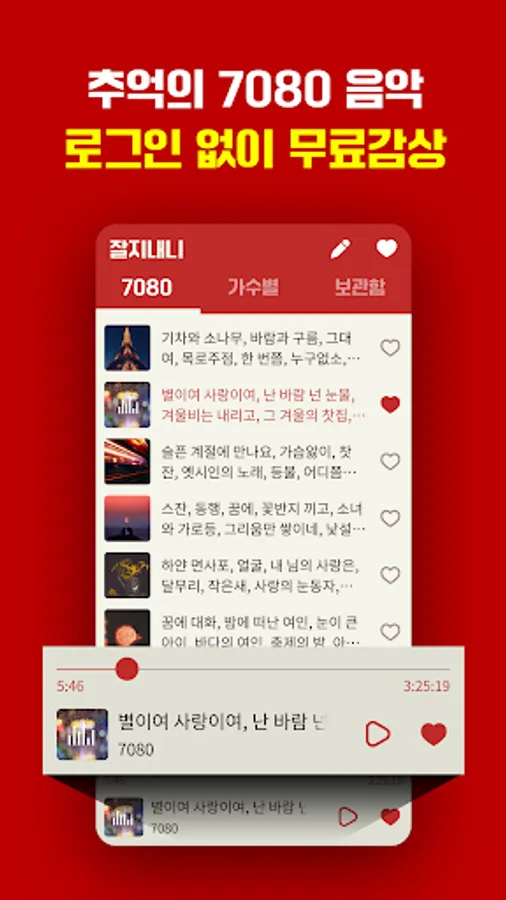 You can enjoy 7080 songs and music even when your phone is turned off.