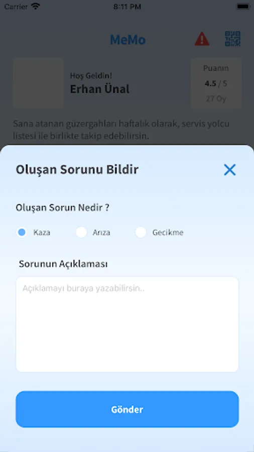 Memotive sürücü uygulaması ile sürücüler rotalarını girebilir, seferleri yönetebilir.