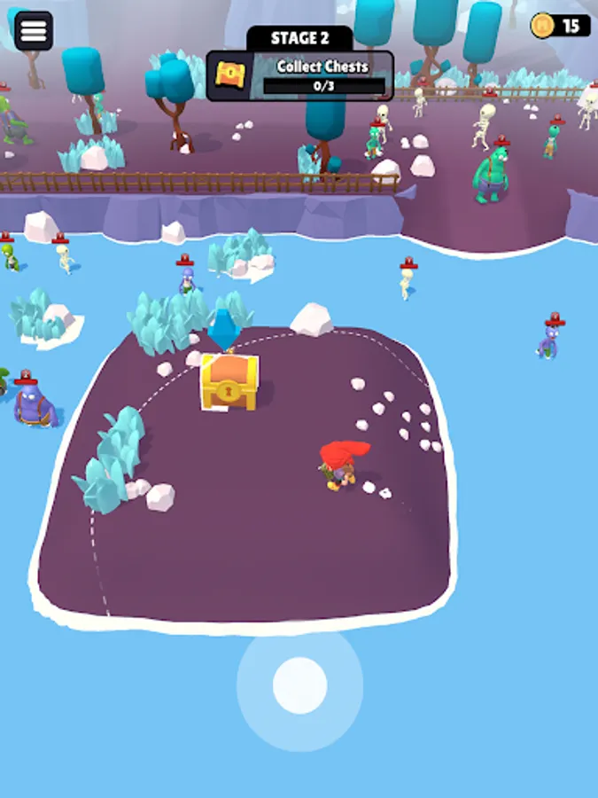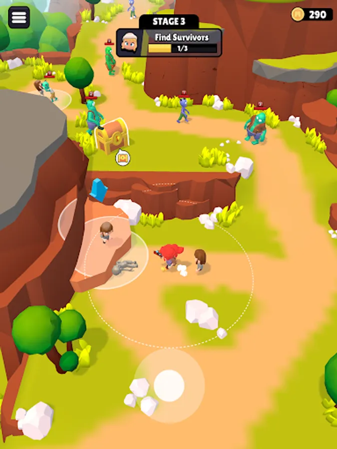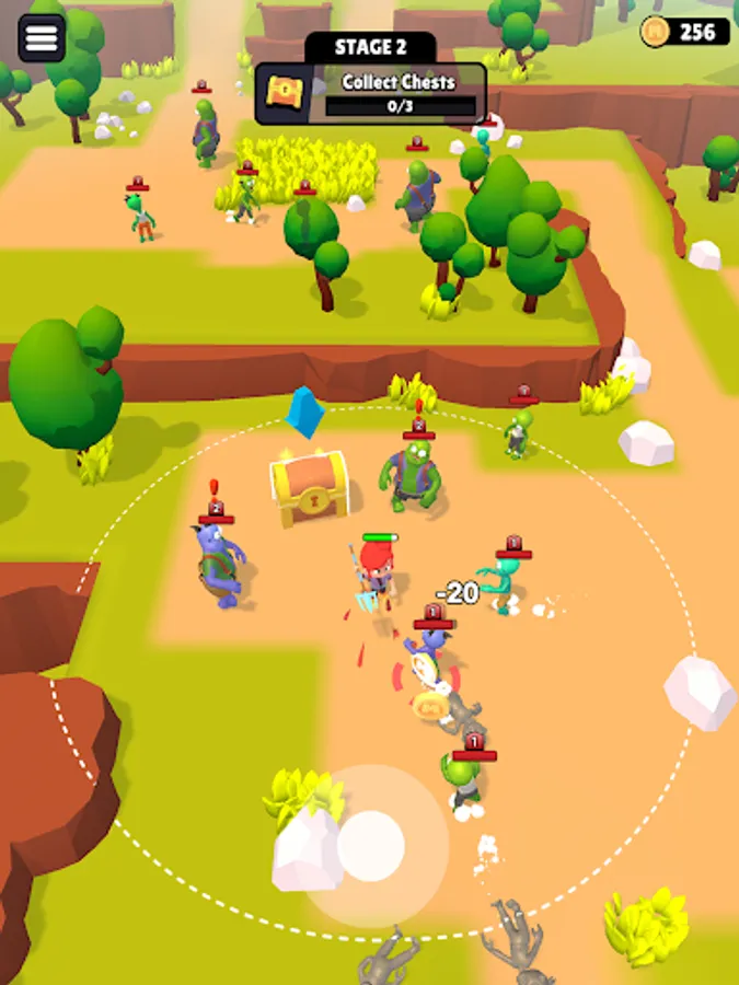 Defend yourself against a horde of zombies in this action-packed adventure! Control your character using joystick through treacherous terrain and collect resources from chests to craft new weapons. Merge resources to create even deadlier gears and take on more powerful creatures.