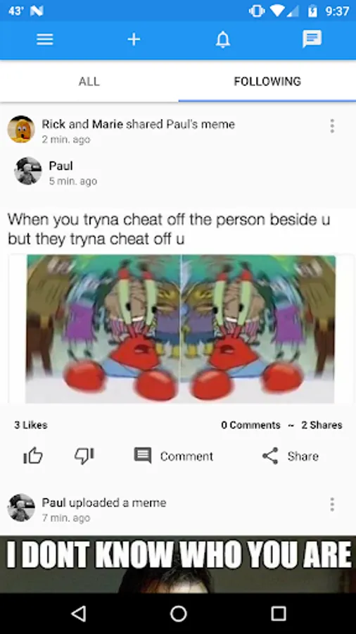 Memr is a social networking app that allows you to connect with other like-minded people, nearby or around the world through the power of memes!