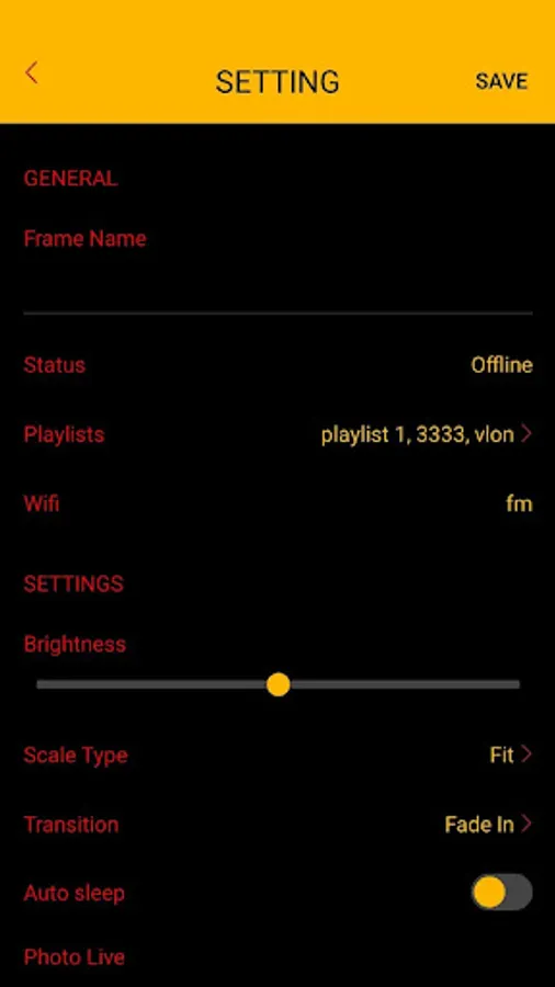 Picture Frame settings. It can connect up to 5 frames by scanning the QR code