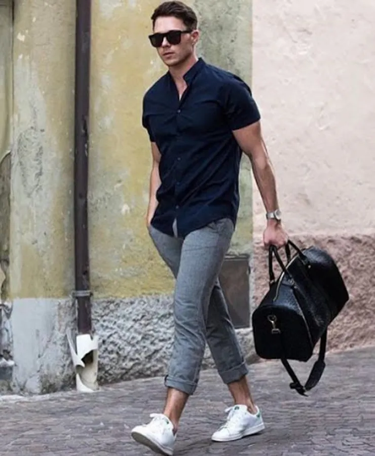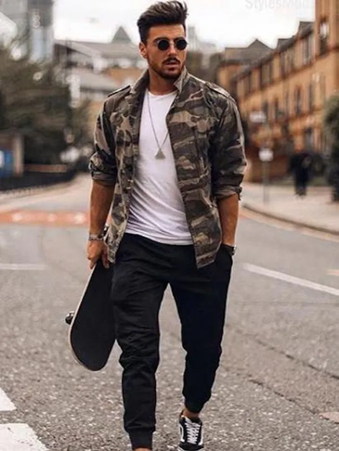 The street style is ruled by the use of dress shirts, t-shirts, cardigans, sweatshirts, and jackets. These shirt items go along well with a pair of new navy blue or any other shade jeans or pants. Joggers or office shoes are worn to give a street look. The use of a cap or sunglasses is optional but if you wear an in-fashion hairstyle, you can surely carry the glasses as well.