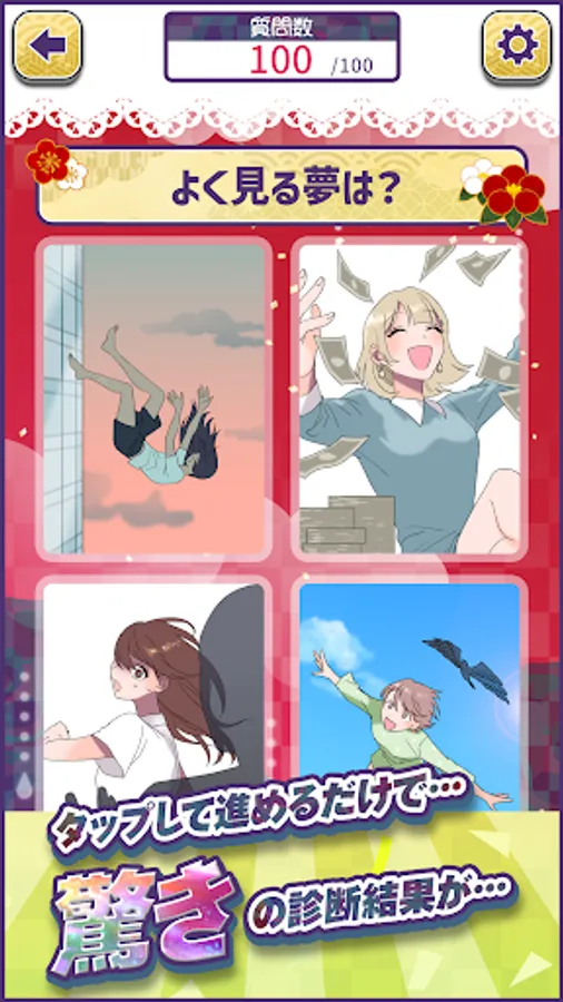 Diagnosis progresses just by tapping the illustration, so you can enjoy diagnosis easily and intuitively! !