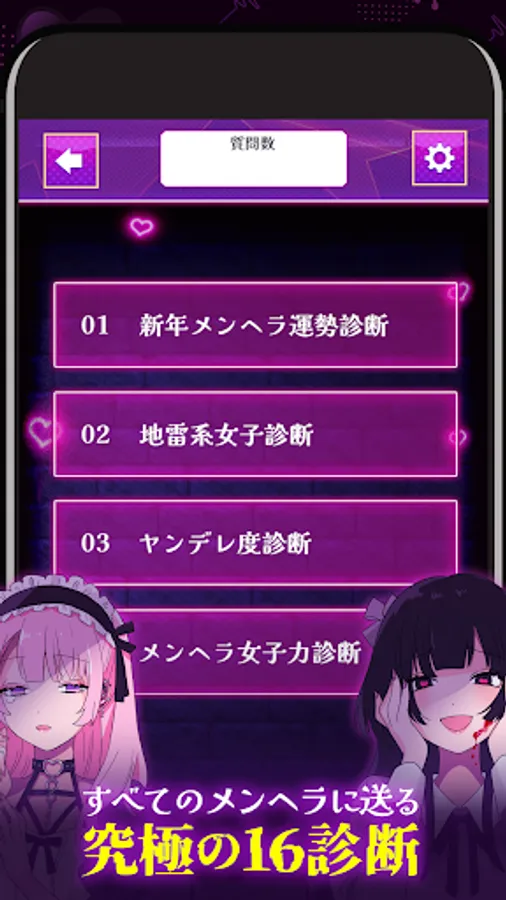 "Menhera/Yandere/Landmine Diagnosis" is an ultra-orthodox diagnosis and psychological test app dedicated to all people who have darkness!