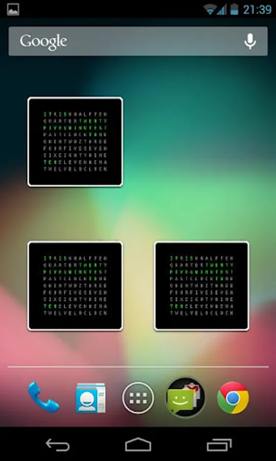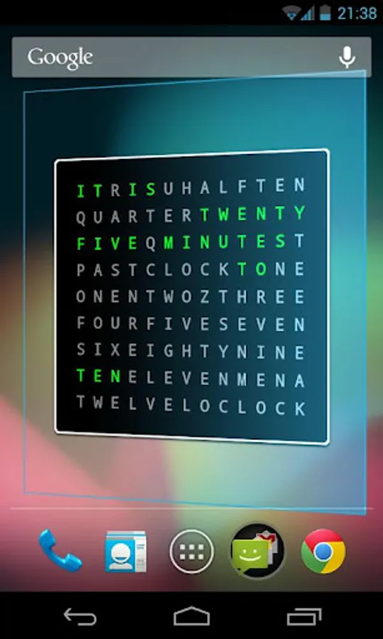 WordClock is an original widget clock for your android launcher. Its main feature is the format, you can see the time in a sentence.