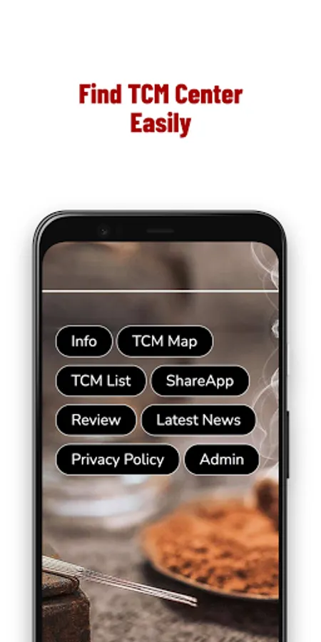 * Nearby features allow user to find nearby TCM Centers from current location.