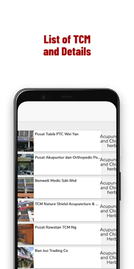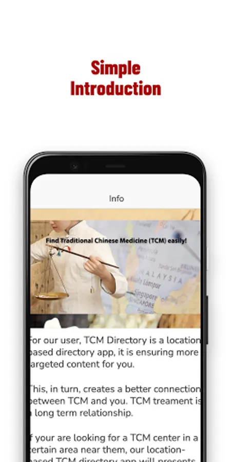 * View various TCM Center information and photos just like any traditional paper directory, including type of services offered e.g. acupuncture, Chinese medicine and more.
