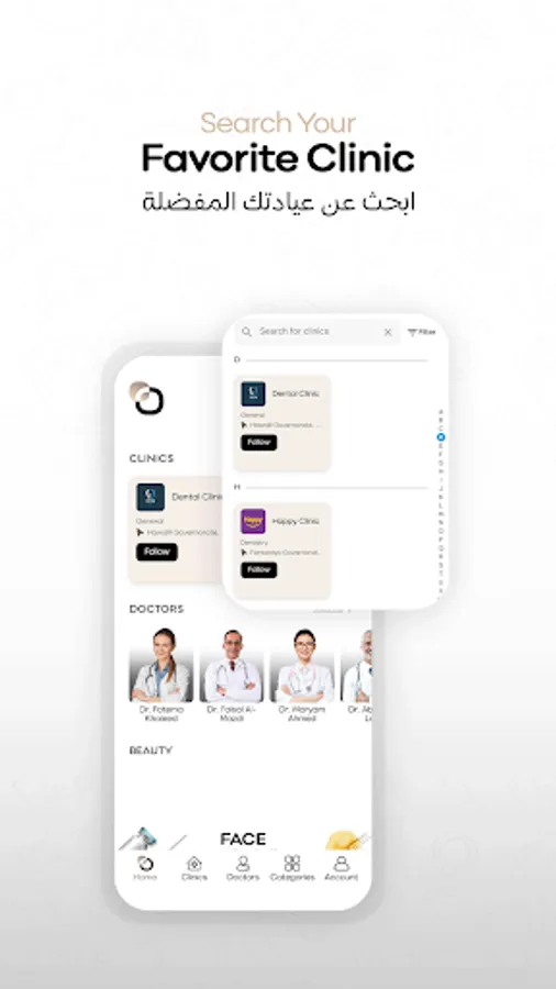 • Artificial intelligence helps you search for your favorite Clinic/Doctor or category.