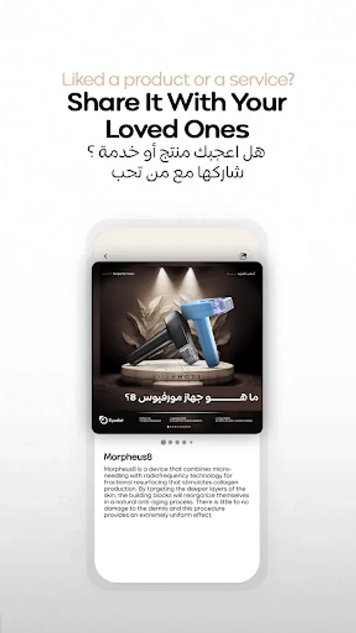 Eyadat will be your stargate for many Beauty & Medical clinics, so you don’t need to go through the hassle of finding clinics’ numbers, location, and their team. Besides, by using Eyadat Platform, you can view the services with pictures of all your favorite clinics on our easy-to-use Website and Application.
