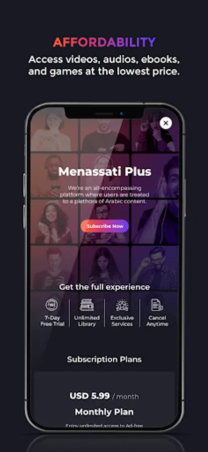 Think about the multiple and expensive subscriptions you pay for to access movies, podcasts, ebooks, and mobile games. At Menassati you only pay $5.99 a month, just a little over the spare change in your pocket!