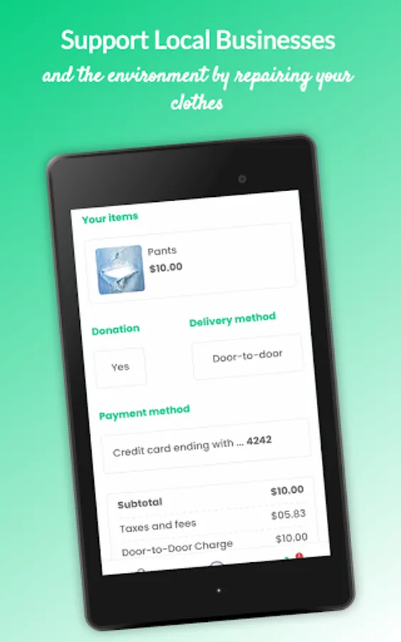 Upload a photo of the item you’d like to mend, get up-front pricing, and pay in the app.