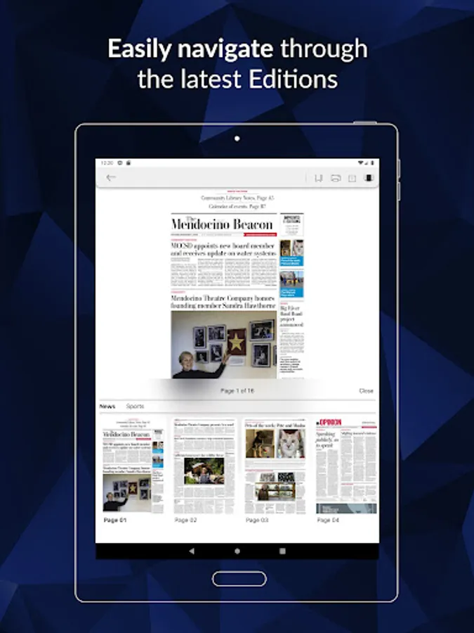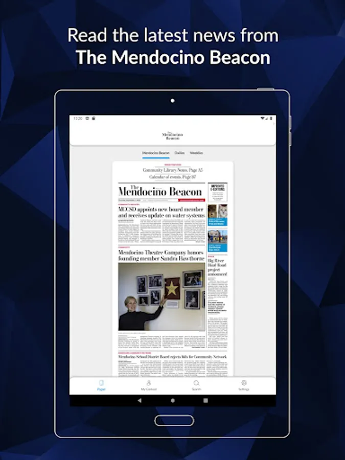 The Mendocino Beacon presents the e-Edition, an exact digital replica of our print product. For users who prefer a more traditional feel and layout for their online news, the e-Edition features a sectional layout of the daily newspaper. The app is free to e-Edition readers. Local news for Mendocino and nearby communities, including Albio, Caspar, Comptche, Elk, Little River and Navarro..