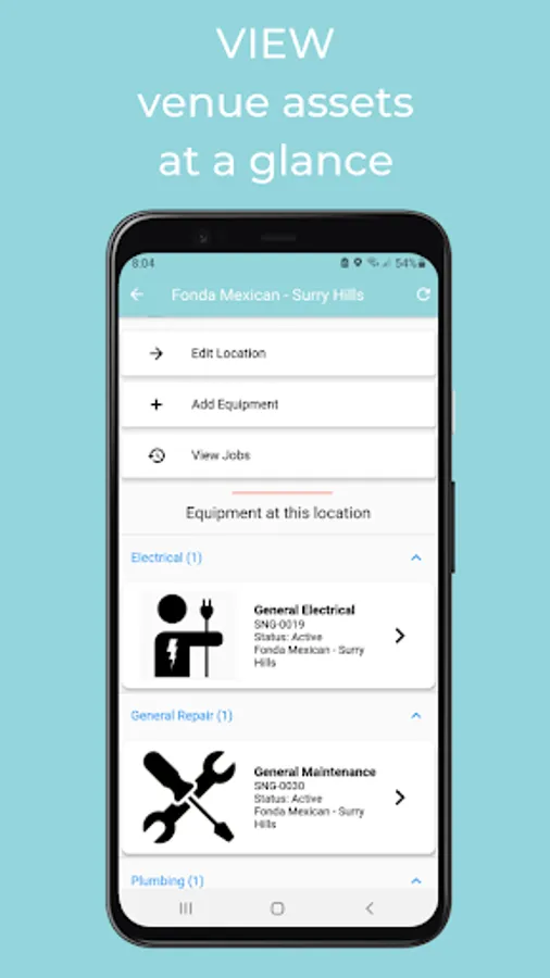 - EQUIPMENT register to track warranty, service history, photos, user manuals, etc