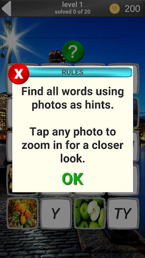 Attention!!! Upgrading from version 1.0.5 to version 1.0.6 will result in loss of game progress!!!! In version 1.0.6, we added rewards for viewing ads, rewritten the game logic, and updated the graphics.In this game there are 620 words and the same number of pictures. Need to guess the word shown in the picture. Mostly words are used in everyday life, but there are those that are extremely rare in everyday conversation. Your task is to guess the word shown in the picture. The game promotes the development of logical thinking. Enjoy your stay.