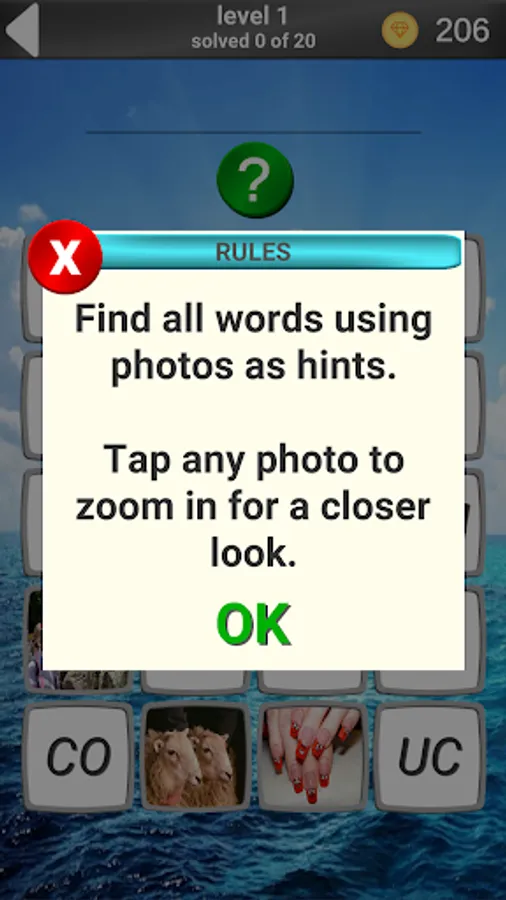 ATTENTION!!! Updating version 1.0.2 to version 1.0.4 will result in loss of game progress!!!! In version 1.0.4, we added rewards for viewing ads, rewritten the game logic, and updated the graphics.In this game there are 620 words of riddles and the same number of pictures. Need to guess the word shown in the picture. Mostly words are used in everyday life, but there are those that are extremely rare in everyday conversation. Your task is to guess the word shown in the picture. The game promotes the development of logical thinking. Enjoy your stay.