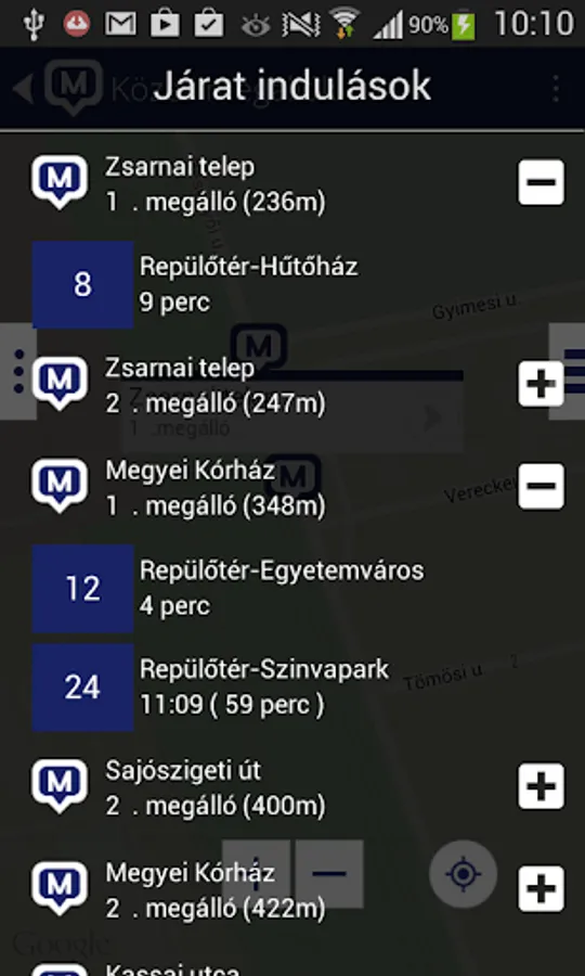 The application is able to give an accurate picture of the current position of the active services and information to the beérkezésükről stops - the schedule indicating potentially different data.