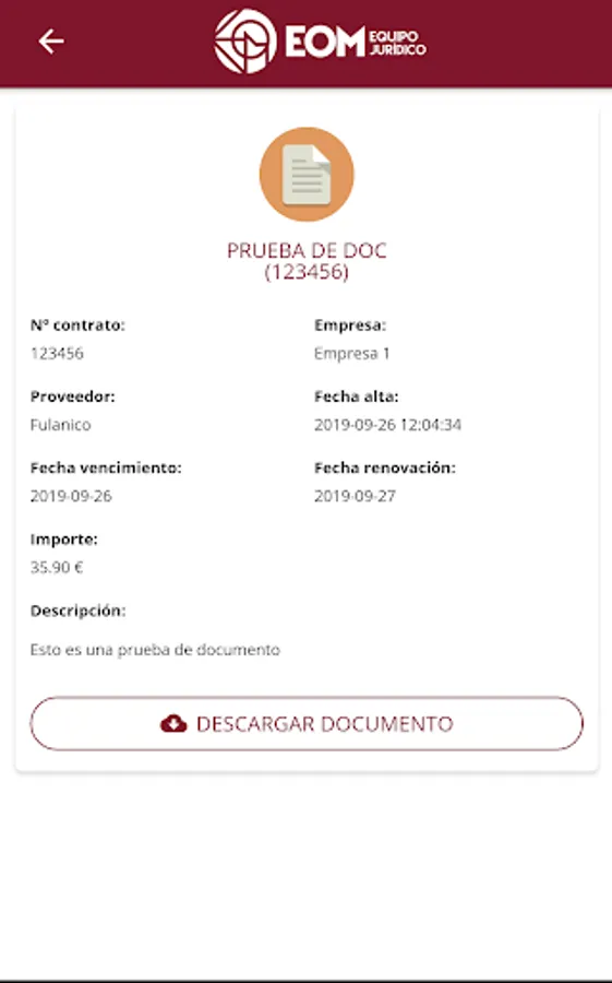 Application of EOM Legal Team that will allow you to see all your documentation and reports along with all the data of the same organized in different categories to expedite the management and consultation of the final client.