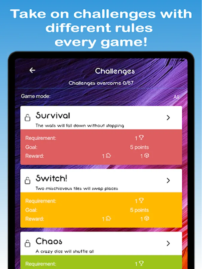 - Chaos, in which the game grid shuffles surprisingly, do not hesitate too much, the tiles could revolutionize at the best part!