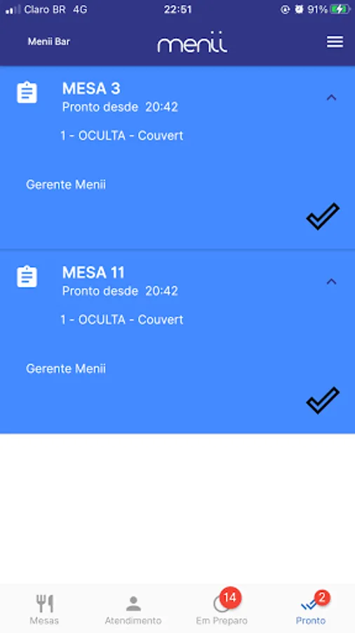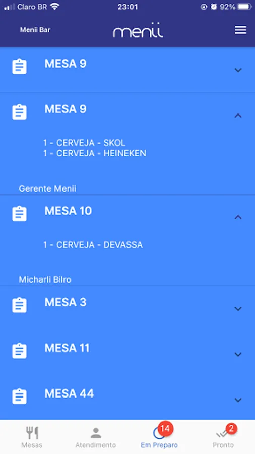 This application was created to be used by waiters and minions from partner bars and restaurants in Menii.