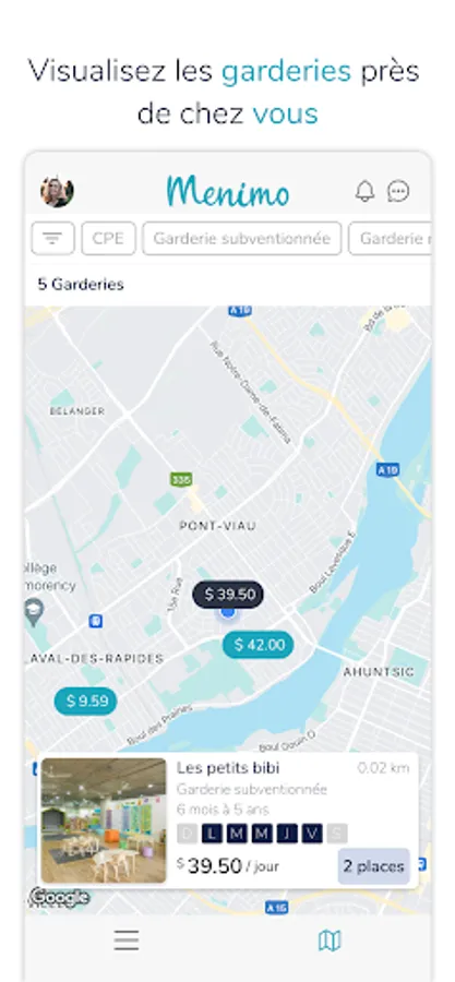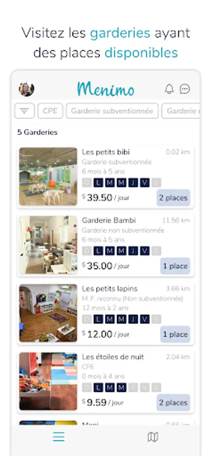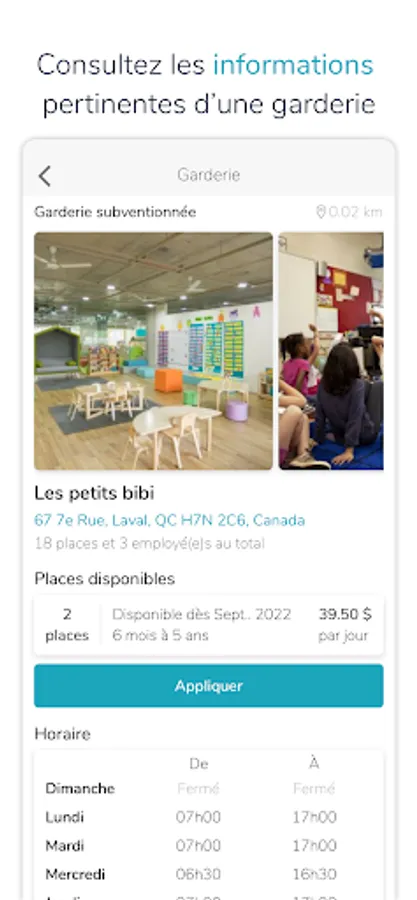 Various information related to daycares and their place are immediately displayed to facilitate research.