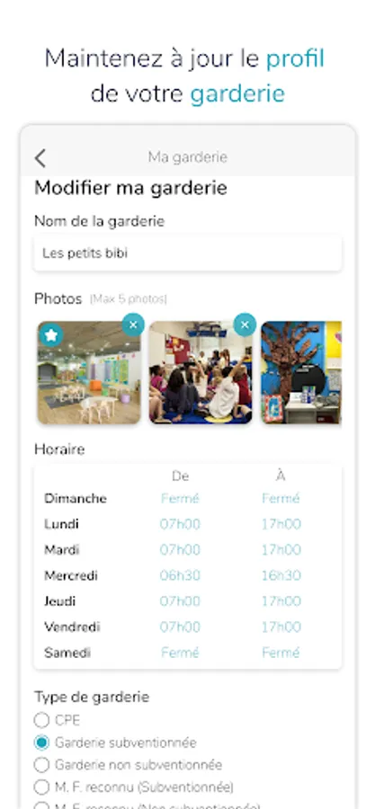 You will find their address, rates of available places, opening hours, the contact details of the person in charge of the daycare service and much more.