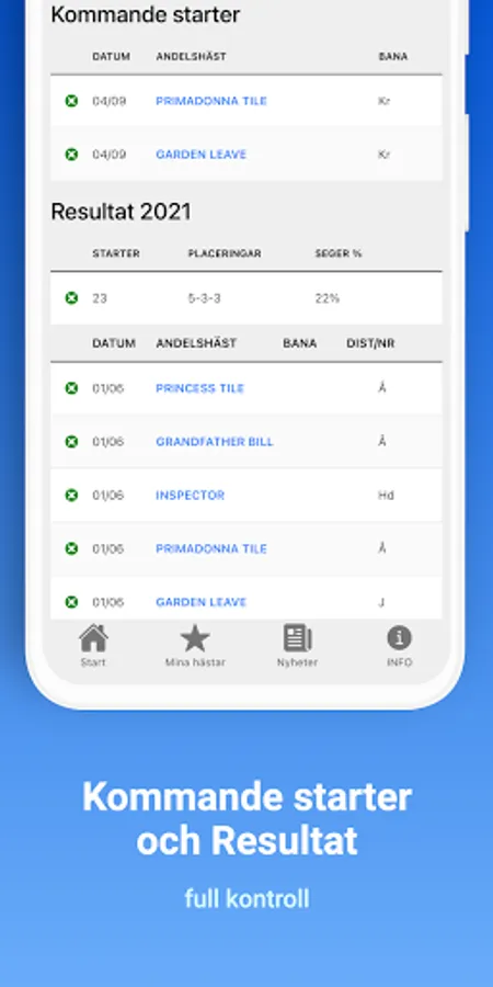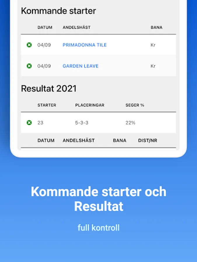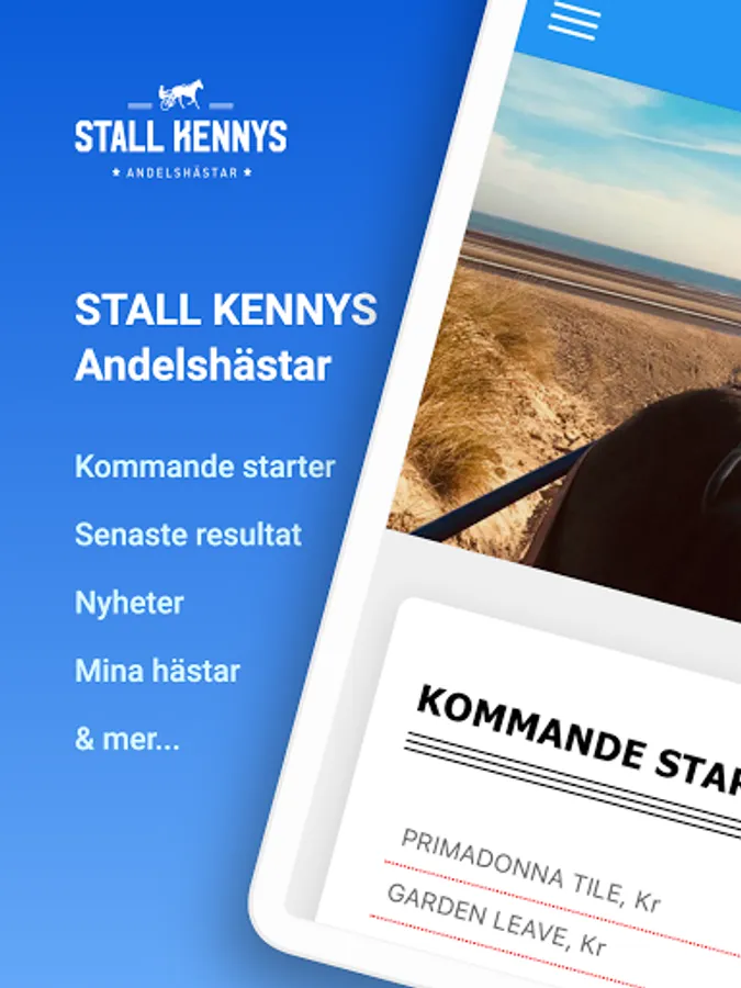 Stall Kenny's Cooperative Horses was founded in 2000. We offer top-bred trotting horses as cooperative horses that we believe can be successful on the competition track. They are selected and inspected by some of Sweden's leading trotting coaches. Stall Kennys works closely with Björn Goop, Timo Nurmos, Mattias Djuse, Johan and Peter Untersteiner and others. It is the unit holders who jointly own all units in the horse and you have the opportunity to follow results and news via the app.