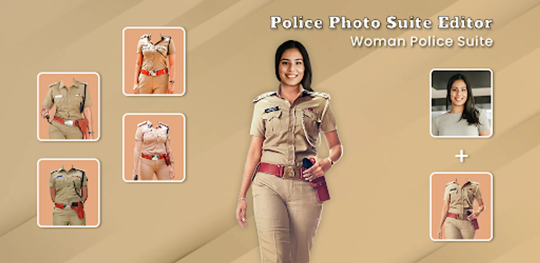Women Police Dress Photo Suit editor for girl is a complete Asian girl police photo editor app package and foreign police suits for both police men and woman dress collections, all army suit editor, police caricature, frames, police suit camera along with backgrounds and GIF.