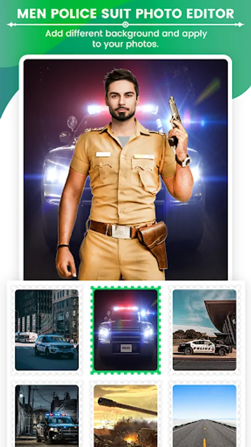 - Become a tough policeman with a Police Photo app in a policeman's suit!