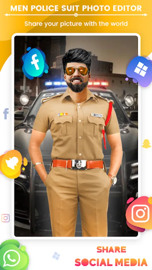Man Police Suit Photo Editor is a photo editor app with men Police dress Suit collections & stickers. It has a wonderful collection of different types of backgrounds. It has 20 suits and 100+ stickers totally. Fun is unlimited in this Police Suit Photo Editor - Police Dresses app.
