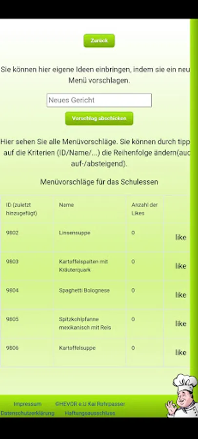 If you are a student at the Freie Waldorfschule Magdeburg, you can use this app to view the meal plan from anywhere. You also have the option of posting your own suggestions about what you absolutely want to eat in the app and your classmates can then vote the suggestion to the top. You can also rate the food you ate with 1 to 5 stars. If you have any wishes or ideas, you can send them directly to the kitchen staff in the app.