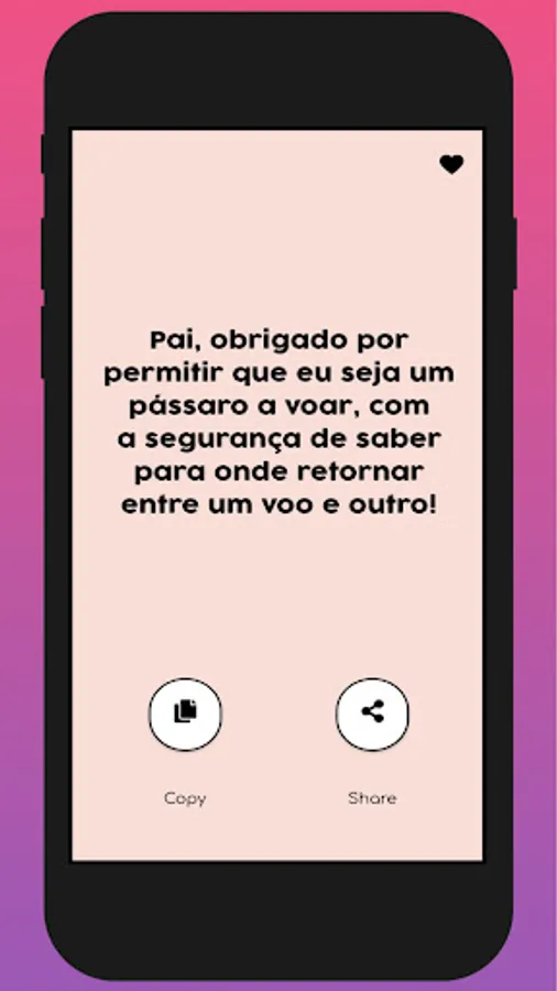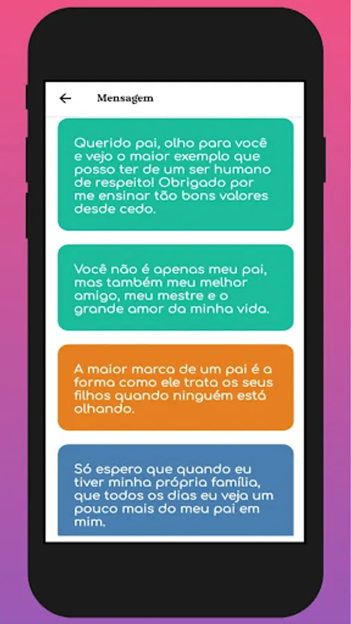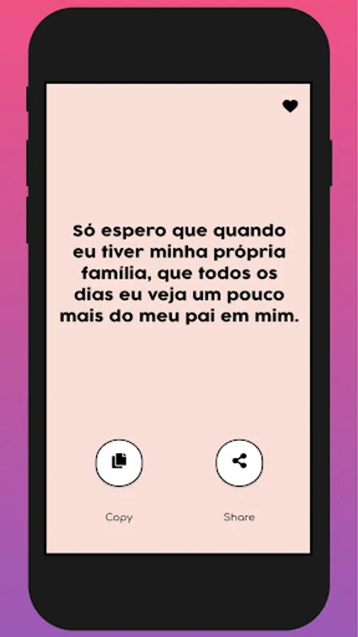 Send it directly via Whatsapp, SMS or Email, Frases Para Pai allows you to share it with the most diverse messaging applications, in addition to being able to copy your phrase to the clipboard.