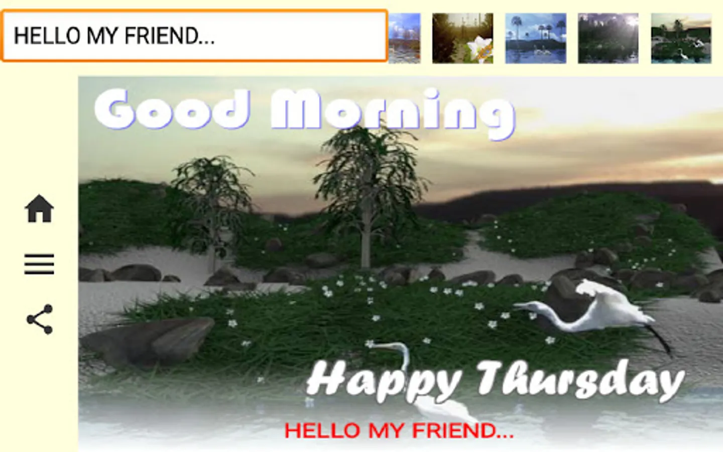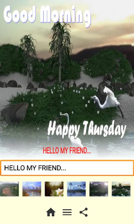 ✧ Type personalized messages of good morning, good afternoon and good night in images chosen from a menu