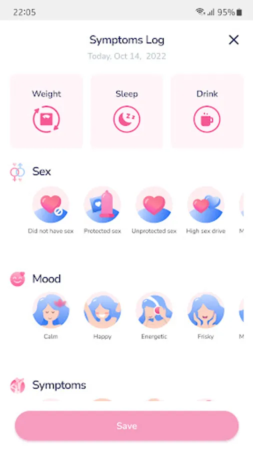 Moreover, period tracker, ovulation trackers, women log application updates more than 70 health symptoms including bloating, abdominal pain, cramps or mood swings, and sleep quality... even tracks your weight, water intake each day.